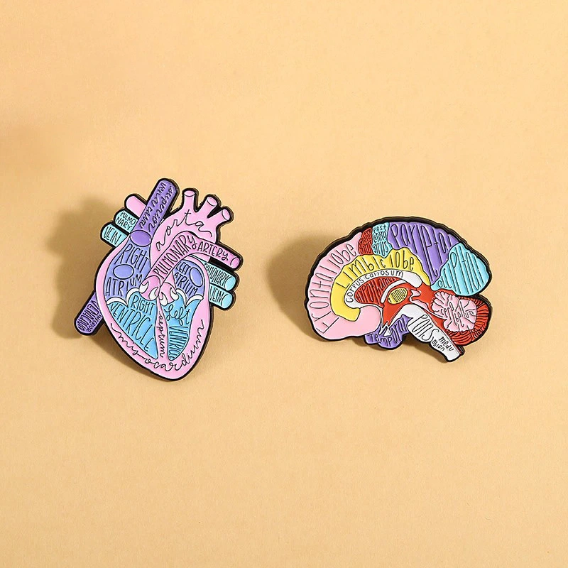 Enamel Pin – Anatomical Brain and Heart (2pcs)